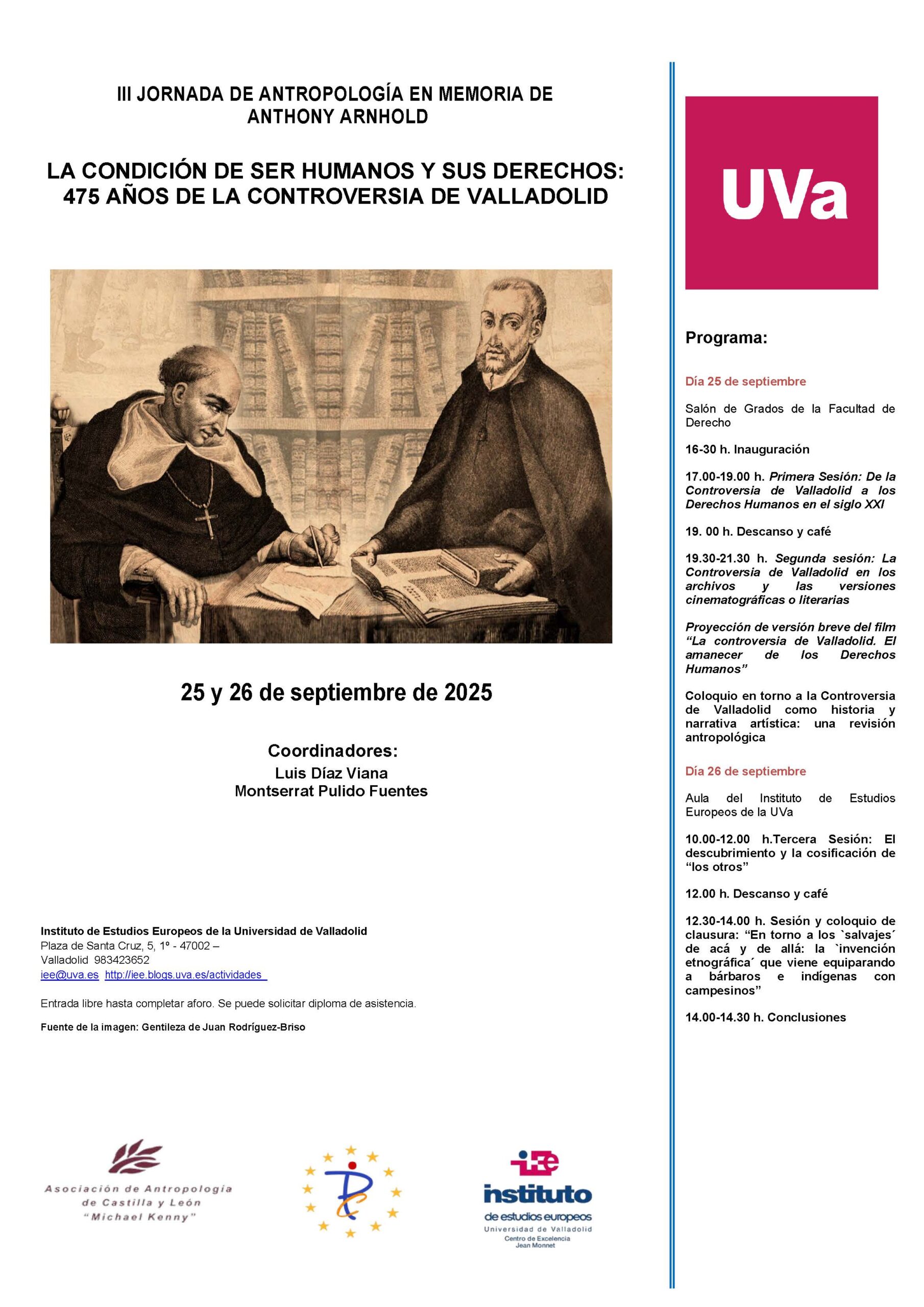 III JORNADA DE ANTROPOLOGÍA EN MEMORIA DE ANTHONY ARNHOLD LA CONDICIÓN DE SER HUMANOS Y SUS DERECHOS: 475 AÑOS DE LA CONTROVERSIA DE VALLADOLID