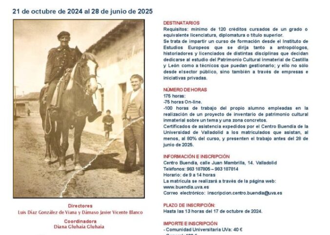 Directores: Luis Díaz González de Viana y Dámaso Javier Vicente Blanco Coordinadora: Diana Gluhaia Gluhaia Fechas: del 21 de octubre de 2024 al 28 de junio de 2025 Lugar: Campus Virtual de la UVa. – Los alumnos UVa accederán con sus claves…